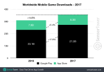 The report finally delved into mobile gaming revenue, which increased 30 percent year-over-year to an estimated $48.3 billion – or nearly 82 percent of all app revenue. Game downloads were more popular on Google Play, which accounted for 27.2 billion (77%) of the estimated 35.5 billion downloads.