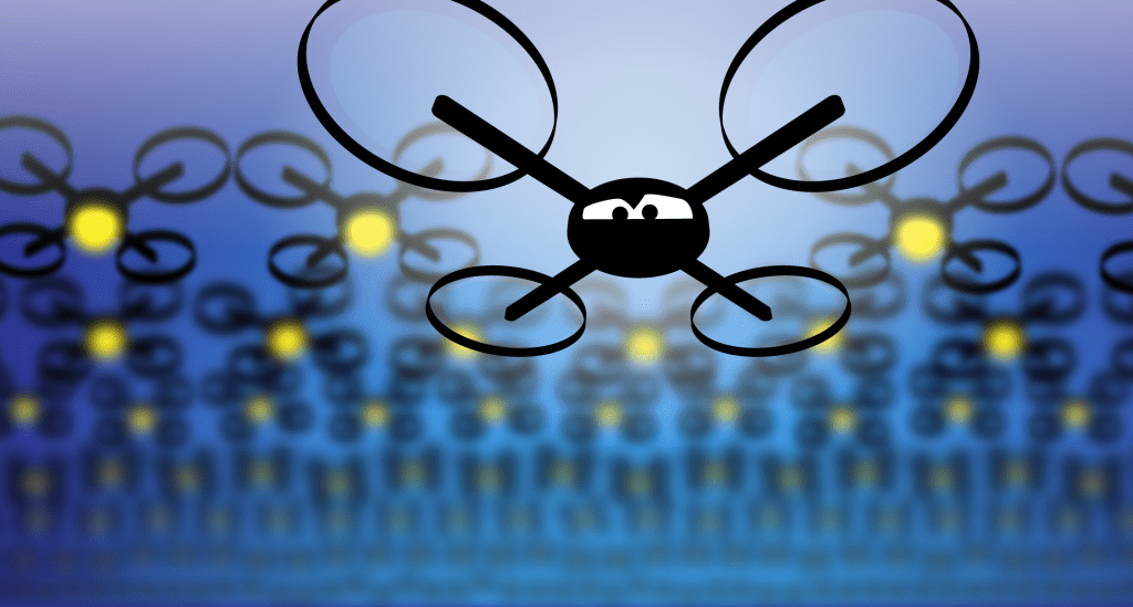 One person controls the army of drones thanks to a sophisticated control platform that pre-plans the route of each drone. At that time Intel engineers told me that the system can control an unlimited amount of drones. In the version I saw, the drones used GPS to stay in place and the drones lacked any collision detection sensors.