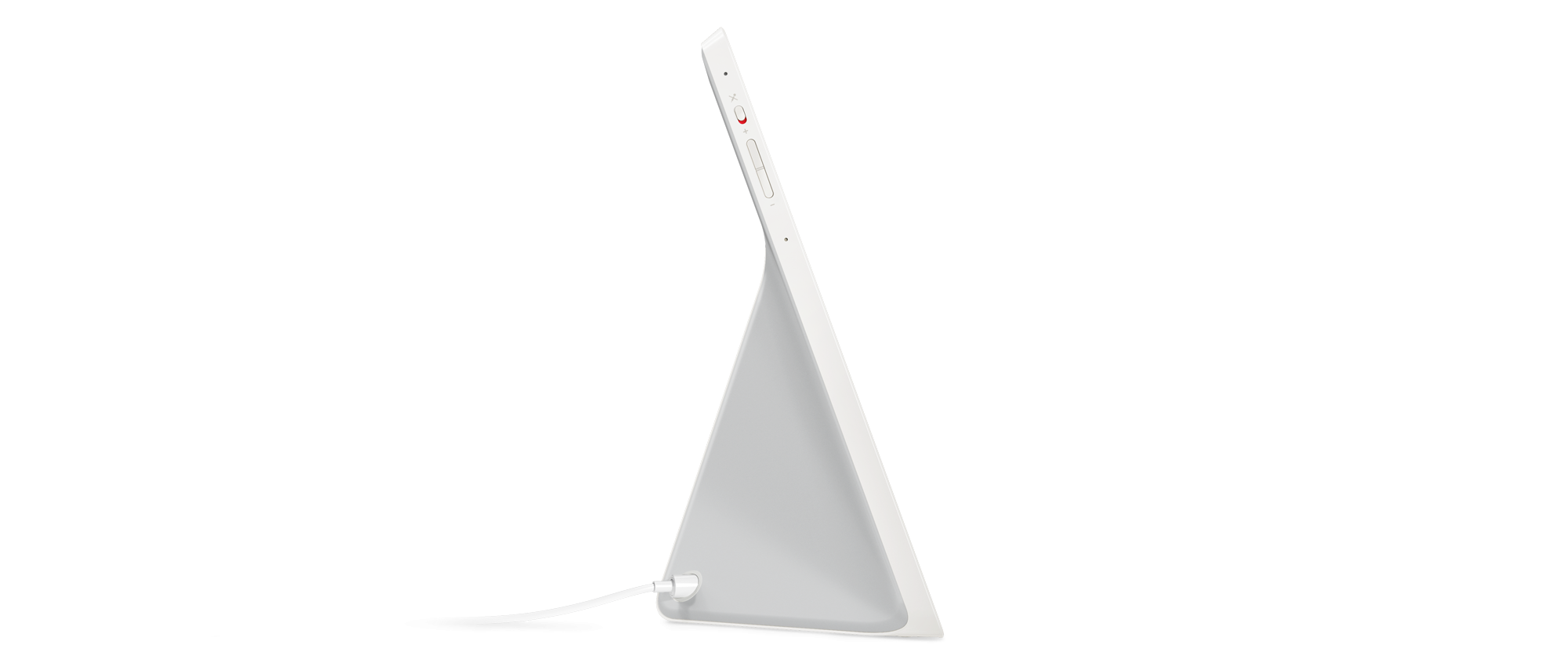 It’s not an exact match with Google’s fabric aesthetic, but it will make the system look more at home on most shelves. The curved backing also means that, like the Home Max, it can be propped up either horizontally or vertically, space dependent. Essentially, it looks like a tablet with a kickstand, and a largish 10-watt speaker positioned to the left of the screen.