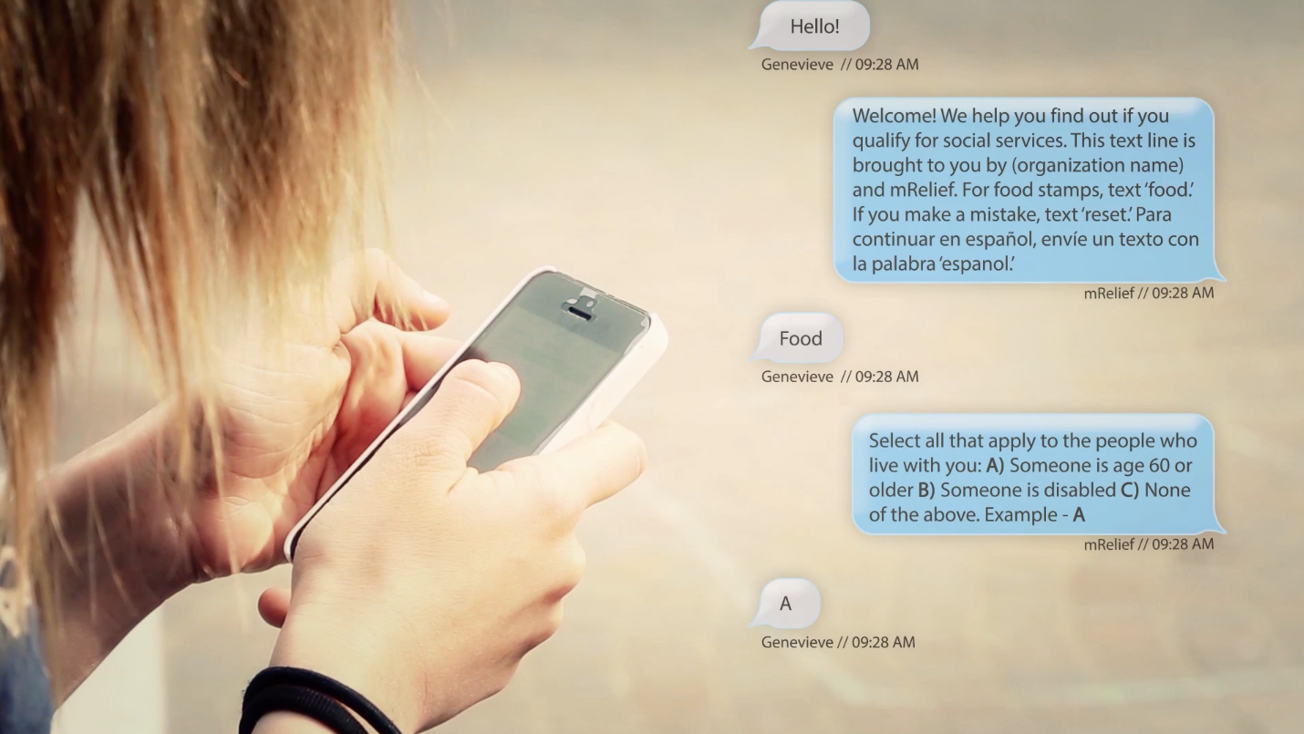 Through mRelief, applicants can apply for food stamps via the company’s web-based or text messaging tool. Text messaging is an important function, mRelief co-founder and CTO Genevieve Nielsen told TechCrunch, because “a lot of our users lose access to the internet at a certain point throughout the month.”