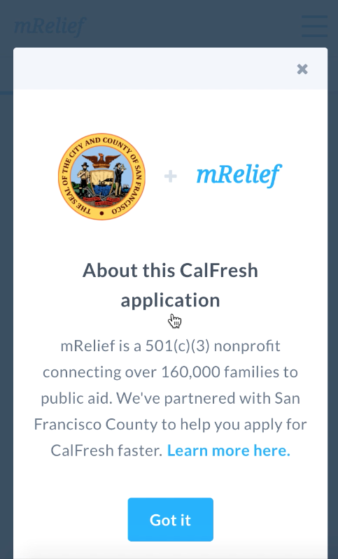 Until today, mRelief simply helped people find out if they qualify for food stamp services. Now, mRelief takes them through the entire process. The service is free to use, and mRelief offers free Lyft rides to people who need to do interviews. This launch is a culmination of contracts and partnerships with the California Department of Social Services, San Francisco County and Yolo County Health and Human Services Department.