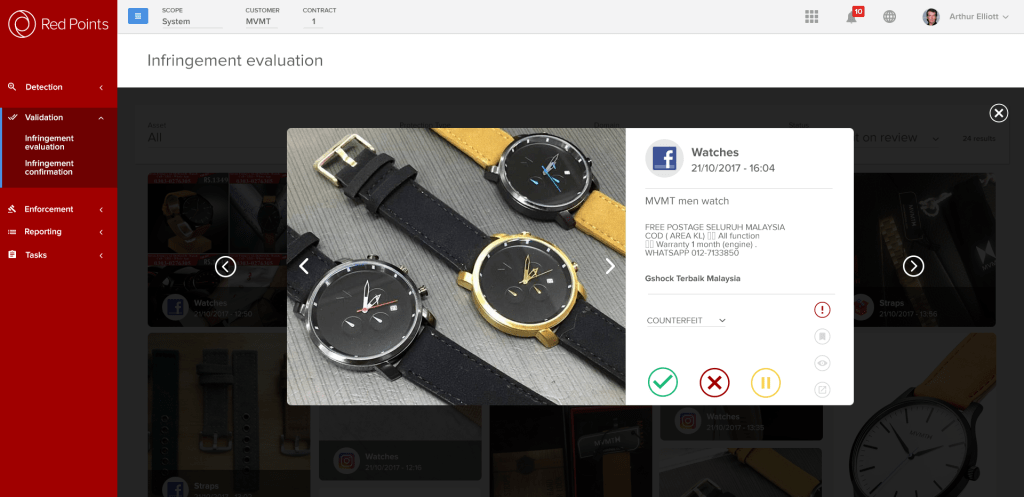 The startup offers a cloud-based SaaS solution for IP infringement detection and removal. The system scans for counterfeit products online on behalf of customers and automates the process of having any fake goods (and/or pirated content) removed.