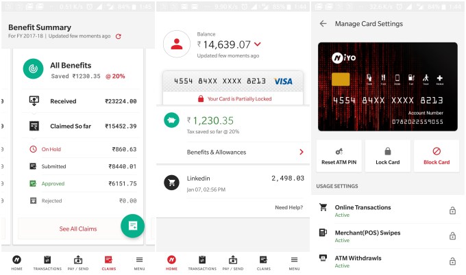 NiYO’s user acquisition is method is via the companies it signs up — 90 percent of staff typically sign-up per company brought on, according to Bagri — and through bank partners YES Bank and DCB Bank which also distribute its service.