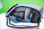 Camera bags have had similar dividers for decades. But it’s the origami nature of these dividers that make them among the best available. The dividers have several bendable points that allows the user to configure the bag without the need of extra, smaller dividers. I love it. This design made easy work of a Canon 6D, a kit, telephoto and macro — something that I couldn’t do well in my North Face bag. I had one divider running parallel with the bottom to hold the camera. Then on top of the camera, I placed one divider vertically, creating two spots to hold the two lenses.