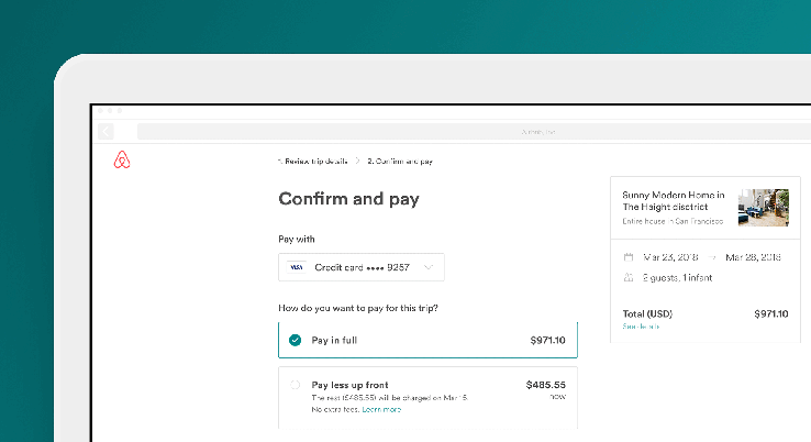 Airbnb said that, during testing of the Pay Less Up Front feature, 40 percent of guests chose to go with that option and chose higher-value bookings. The company also said that users who chose to use the feature booked with 2x the lead time compared to ordinary bookings.