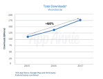 The difference between the total downloads App Annie is reporting (175b) and the 91.5 billion recently reported by the firm Sensor Tower in its own year-end wrap-up can be attributed to how the data was gathered. Sensor Tower’s figures are drawn from the iOS App Store and Google Play. App Annie, however, also includes third-party Android stores in its analysis – that’s how it has visibility into China, where Google Play doesn’t have a presence.