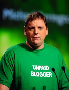 The founder of TechCrunch, Michael Arrington — who had his own issues with the Huffington Post and upper management at Aol — used the issue to goad them all when he was still the head honcho here, by sporting a shirt in TC green with the words “Unpaid Blogger” printed on it, at the Disrupt conference not long after AOL bought TC.