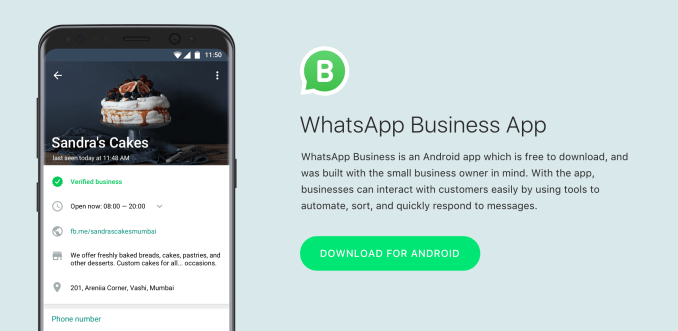 Aimed at smaller businesses, the free app – Android-only for now – helps companies better connect with their customers and establish an official presence on WhatsApp’s service. Essentially, it’s the WhatsApp version of a Facebook Page.