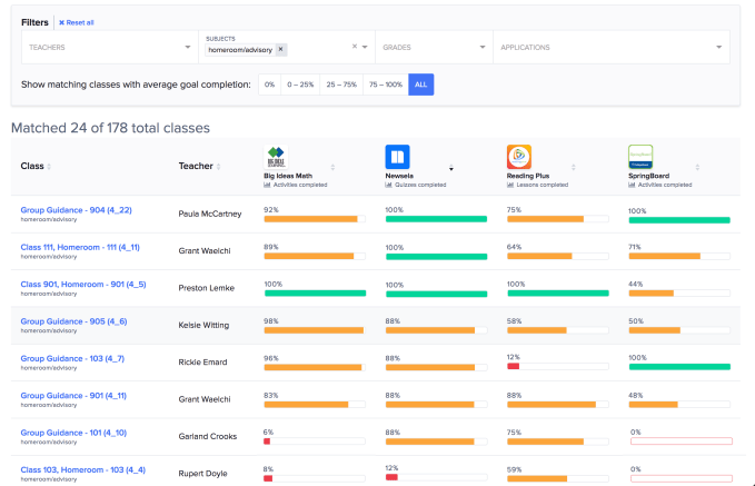 “We’re focusing on marking it smarter for teachers in the classroom,” Bosmeny said. “You can an imagine if you’re a teacher, each one of 20 students are using different apps to learn, and you need to track how students are progressing across all the apps they use. All this data, it should be making things easier, but instead, it’s making it harder. It brings together all the usage data for all edtech products a teacher might be using in order to make it really easy for them to see all the usage that’s happening and set weekly goals and accomplish different things.”