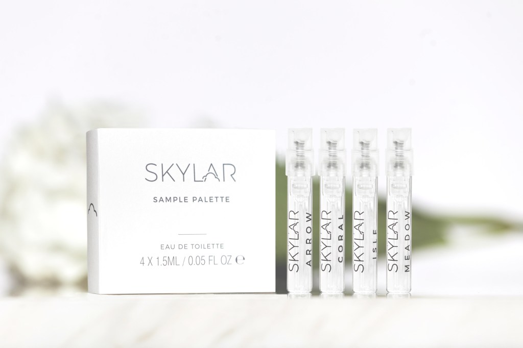 An initial order includes a sample starter pack that contains all four of Skylar Body’s fragrances, and customers can then mix and match as they please. Around 15 percent of shoppers upgrade to the full size from a sample.