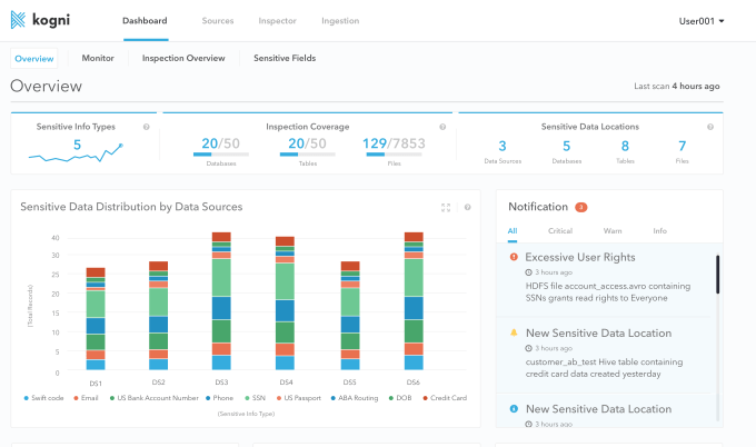 Kogni relies on machine learning to identify patterns and recognize the sensitive data types a company has defined. Ambadipudi says this isn’t just a one time scan. “The notion of understanding where sensitive data is has to be an ongoing process,” he explained. He says the software constantly monitors the data lake for new sensitive data.