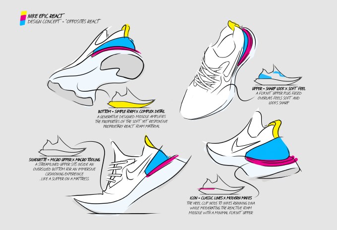 This cuts down on optimal performance since only someone who happens to be the sample size is getting a shoe that’s perfectly designed to maximize performance; everyone else’s size is being made slightly longer or shorter. But instead the foam in the new React Flyknits are custom made for each size – meaning the geometry is algorithmically and proportionally scaled up and down – so each size is perfectly designed to maximize performance and no two sizes will have the same sole texture and design.