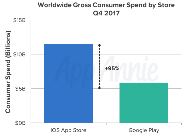 Both platforms saw heavy in-app consumer spending in Q4 2017, as well.