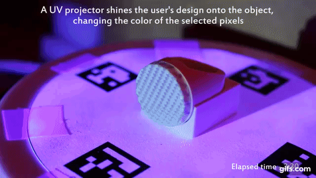 The tech is more than just some modern equivalent to those Hypercolor shirts, however. In a call with TechCrunch last week, MIT professor Stefanie Mueller compared the technology to E Ink — explaining that, once light is applied, it holds that color. It’s also more than just a simple color-changing tech — once the resolution is high enough, the system can be used to create complex patterns.
