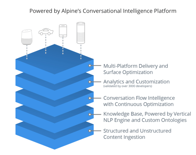 In a matter of days, Alpine can digest the retailer’s website and CMS, then automatically create a voice app using that data. The app is then enhanced by machine learning technology, which learns from incoming consumer queries how to best respond to questions.