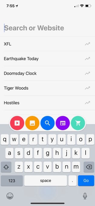 Notably, the browser lacks a voice search button, which is where mobile search and assistance is headed.