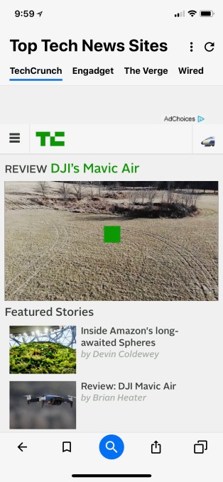 The browser doesn’t yet generate revenue, but the company has ideas about how it could insert a search result that’s really an ad in the middle of its returned pages to swipe through. For instance, if you were shopping for a particular item – like a black cocktail dress – a retailer could advertise their product’s landing page in your shopping search results alongside the organic results.