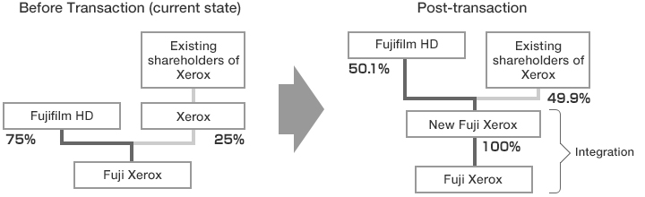 Under this new deal, the existing Fuji Xerox is becoming a subsidiary of Xerox, with the combined companies now referred to as, get this, Fuji Xerox. In a somewhat futile attempt to avoid confusion, the company has temporarily taken to calling the joint venture, “New Fuji Xerox.”