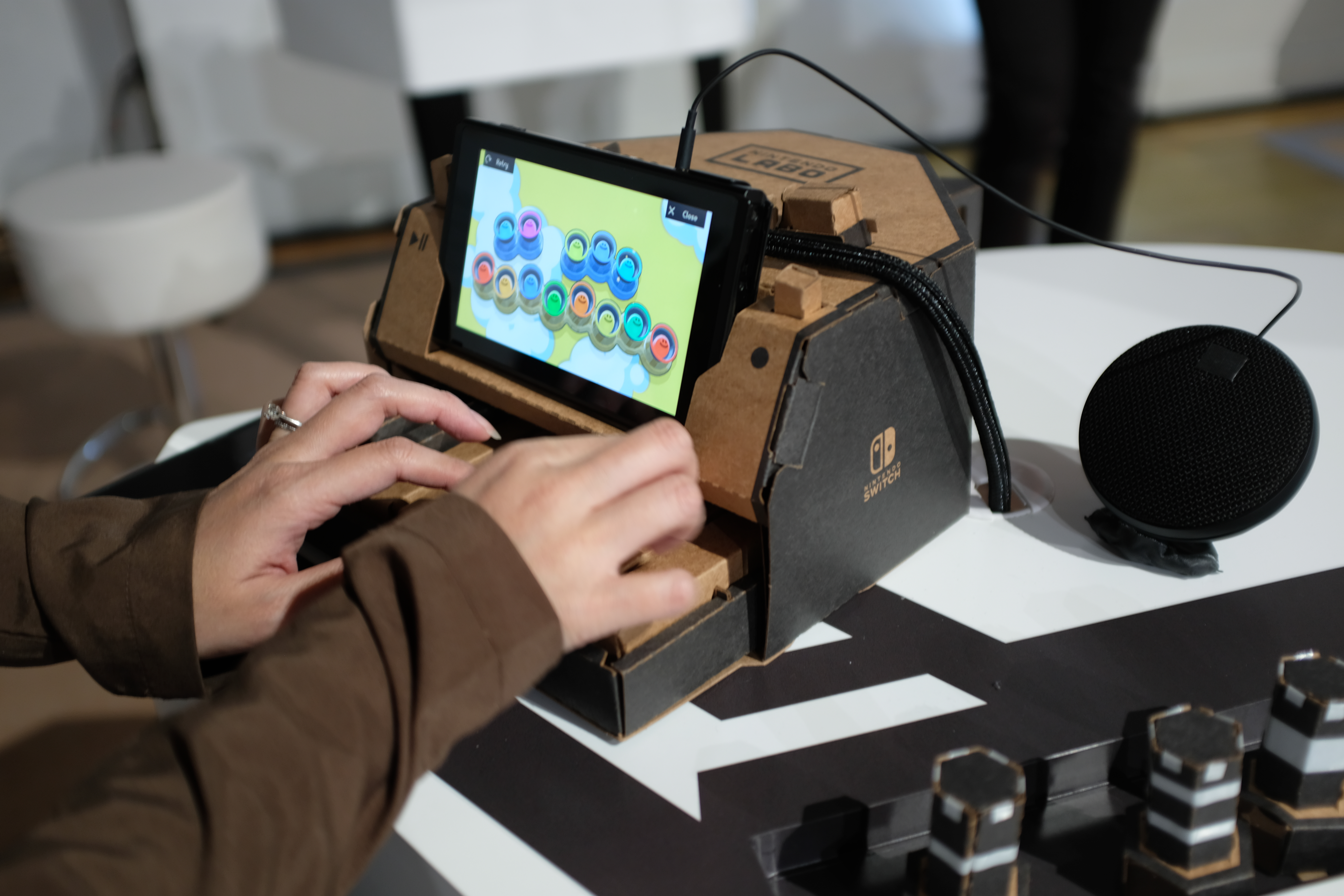 The company also unveiled Toy Con Garage at today’s event — another compelling dimension to the Labo experience. I detailed it a bit more here, but essentially it gives players a way to customize the experience through a simple software interface. In the examples Nintendo showed us at the event, they were using the fishing rod to control the RC car. The company had also built an electric guitar out of customized cardboard pieces, built on top of the piano software.