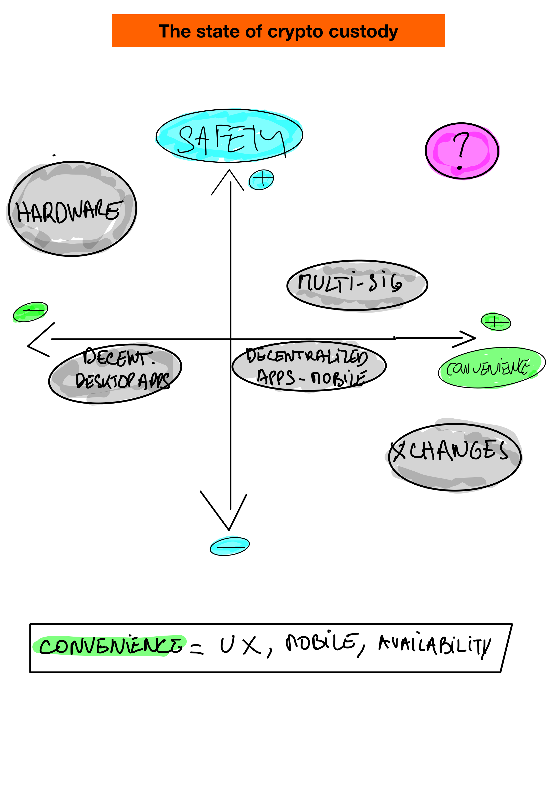 Custody for cryptos has to be improved; the industry will not grow without it. We need better security — which involves both solution providers and platforms — more convenience and a better approach to safety. This is actually something that prevents institutional money from being poured in the industry and of course if you are a company raising hundreds of millions of dollars in crypto money for an ICO, custody is an even bigger issue (right Kodak?).