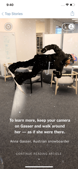 In The NYT’s iOS app for iPhone and iPad, the company is debuting its first AR-enabled article, offering a preview of the Winter Olympics.