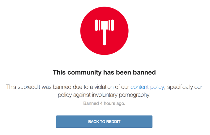 Reddit prohibits the dissemination of images or video depicting any person in a state of nudity or engaged in any act of sexual conduct apparently created or posted without their permission, including depictions that have been faked.