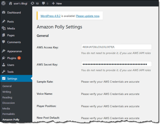 Once set up, the plugin makes calls to Amazon Polly whenever a blog post is saved or updated.