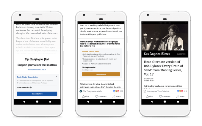 On Android since October, when users run out of free articles and hit the paywall, Facebook has opened a special publisher subscription page within Instant Articles in Facebook’s app, where customers complete the subscription transaction, and publishers keep 100 percent of the revenue. That’s despite Android usually charging 30 percent on subscriptions bought inside native apps.