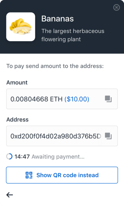 Coinbase Commerce — its new service launched this week — lets merchants add crypto payment options direct to their existing payment flow or added as a separate option. Unlike past retailer solutions from Coinbase, it is hosted independently of the exchange’s services so a merchant can receive crypto to its own wallet. It is also supported worldwide, so not just in the U.S..
