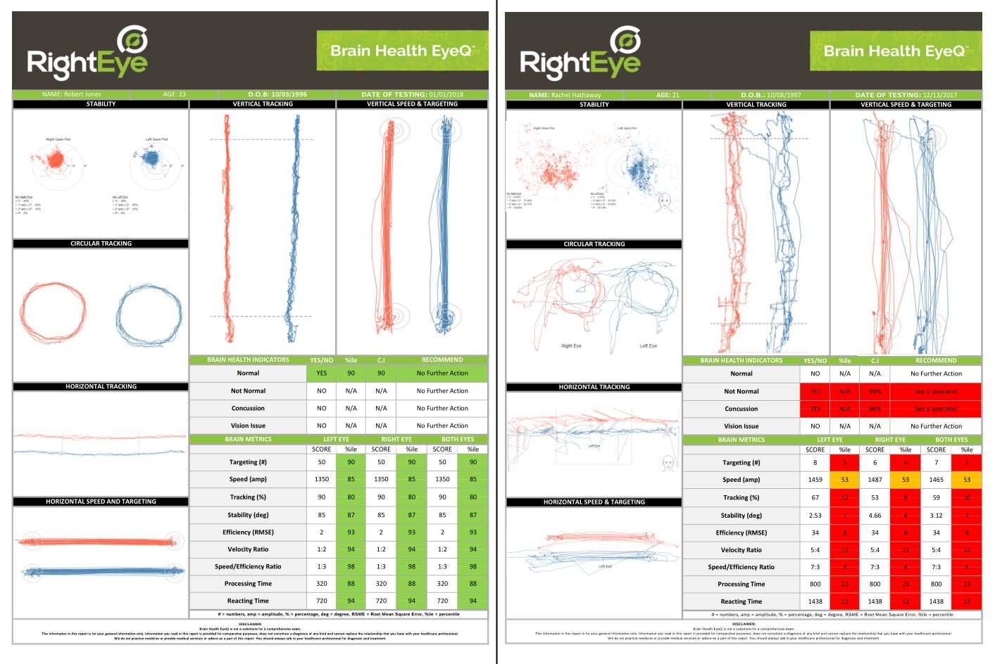 Each eye is tracked independently, and their performance as a matched pair is evaluated instantly. An easy-to-understand results sheet shows their actual movements and how (if at all) they deviate from the baseline.