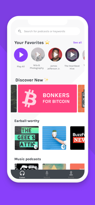Though Anchor had been targeting short-form audio, professional podcasters began using its app in greater numbers last year to take advantage of several of its tools. This included Anchor videos, which turns audio into shareable, video clips (which will be re-added to the new app in a later release), as well as a “call-ins” feature which allows them to receive voice messages from listeners that could be later integrated into a new episode.