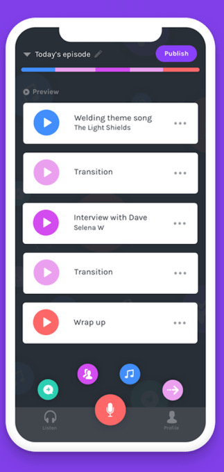 This all color-coded as well, as is a bar at the top of the screen showing the length of each audio piece you’ve assembled. And Anchor has dropped the 5-minute limit on recording your voice, too.