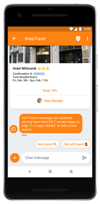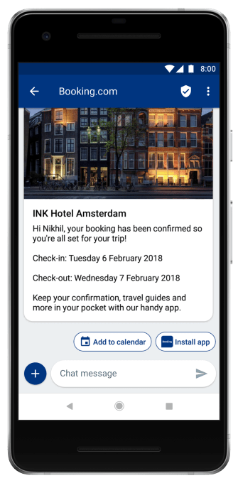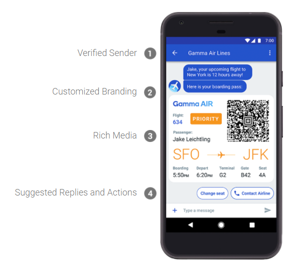 With Mobile World Congress coming up next week, it’s no surprise that Google wants to talk a bit more about RCS ahead of the event. Specifically, the company today noted Business Messaging as one of the central features of the new service. With this, businesses can send verified rich messages with boarding passes, credit card fraud alerts and package delivery notifications, for example. Those messages can include suggested replies and actions (change seat, call airline, etc.).