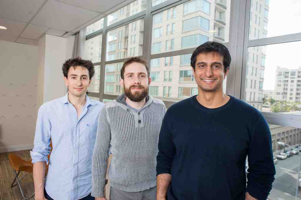 Pictured above, from left to right: Triplebyte founders Guillaume Luccisano, Ammon Bartram, and Harj Taggar.