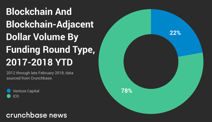 But despite more than $900 million in recorded venture funding in 2017, and more than $375 million in known venture funding for the first two months of 2018 so far, traditional VC rounds — convertible notes seed, angel, Series A, Series B, etc. — now pale in comparison to ICOs in terms of dollar volume.