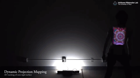 Back in 2016 (on my birthday in fact) researchers from the University of Tokyo posted an interesting video showing a projector and motion tracking system working together to project an image onto moving, deforming surfaces like a flapping piece of paper or dancing person’s shirt.