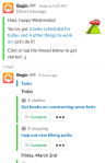 The two people I’ve tagged in my example don’t have to be there when I’m mentioning this, and they won’t have to look through Slack mentions to find what I said, nor do I need to leave the conversation to write the reminder. For all of us, we can turn to Begin itself to check out the tasks when we have time, and on Begin those tasks get ordered by their timing.