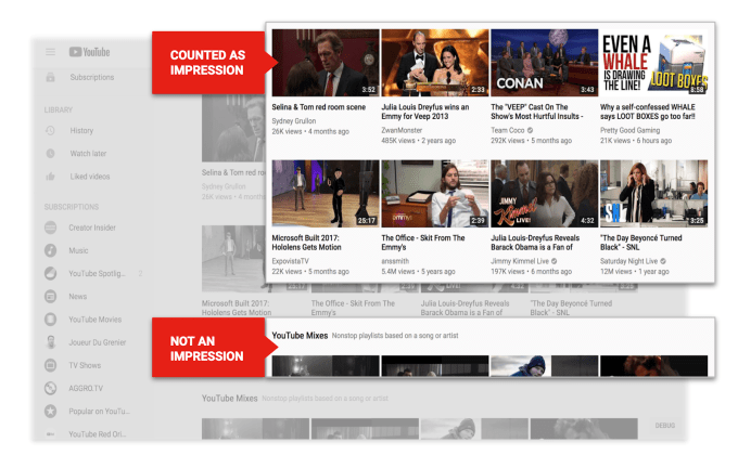 Impressions won’t be tracked everywhere on YouTube, however. They’ll only be counted on the YouTube homepage, subscription feed, search, and in the “up next” section. But that’s at least a good starting point to get an idea about how well your video thumbnails are performing to convert viewers.