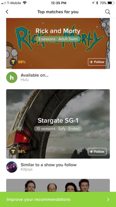 Beyond its new recommendations, you can use the app to track favorite shows, find out when shows are returning, or discover what’s popular among the community and more.