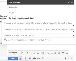 After downloading the Chrome plugin, the service spends 10-20 minutes pouring through your sent messages and building up a good idea of how you write emails. From there, the service lounges in your “compose message” window bringing the insights of autocomplete to the body of your message. The interface can get a little crowded and the utility takes some effort curating responses early on which you can actively delete from future suggestions.