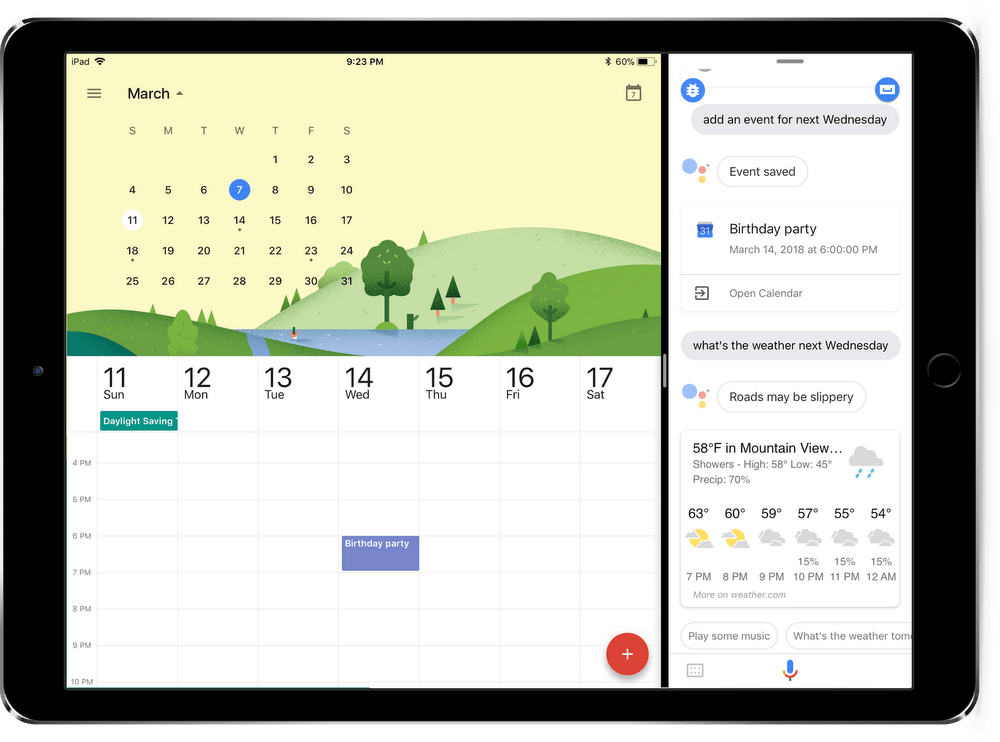 The new app also will take advantage of multitasking on iPad with iOS 11, allowing you to chat with the assistant while performing another task in the other window, like checking your calendar or planning a trip, Google says. The app works in either portrait or landscape mode, too.