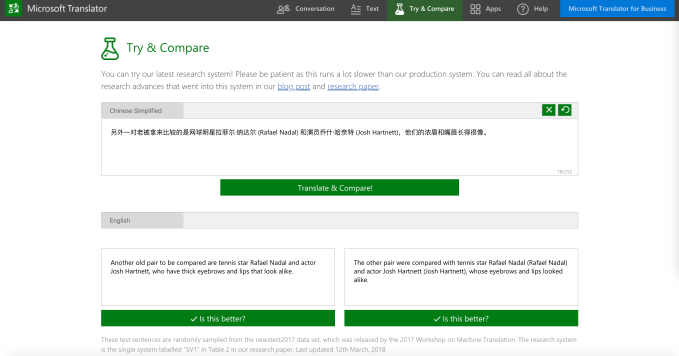 But you can play around with the new translation system here on Microsoft’s website: https://translator.microsoft.com/neural. (This is not the production system, and may run slower at times, the site warns.)