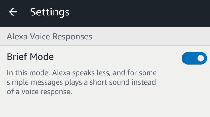 The launch of Brief Mode was first spotted by users on Reddit (via AFTVNews), with many saying they had received the option just a few days ago. Others in the thread noted they had it as well, but then it went away – something that seems to indicate a test on Amazon’s part, or perhaps bugs with a phased rollout. In some cases, users also noticed a new toggle switch in the Alexa app, which allows you to turn Brief Mode on or off.