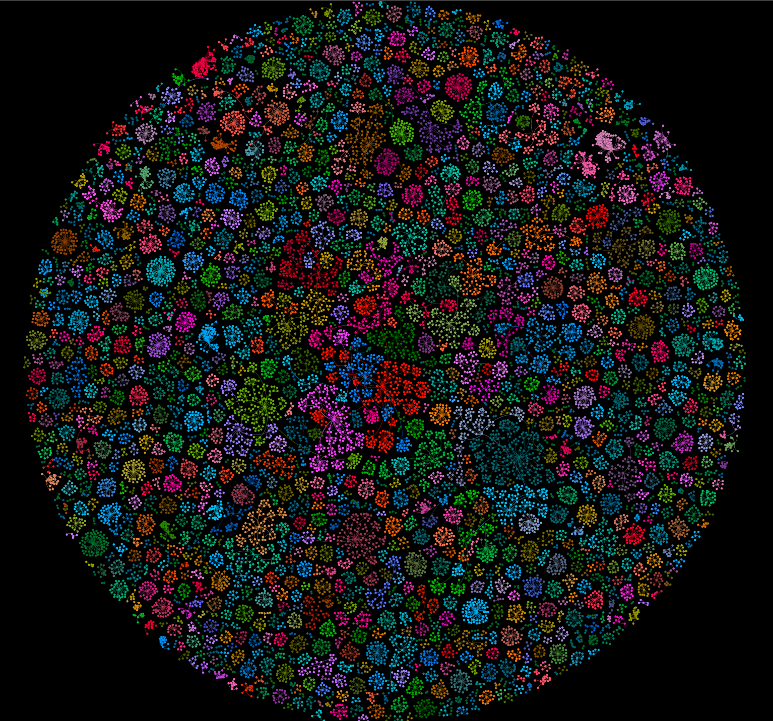 This fabulous visualization shows the 22,000 accounts the script had scraped when Patel stopped it. Each of those little dots is an account, and they exhibit an interesting pattern. Here’s a close-up: