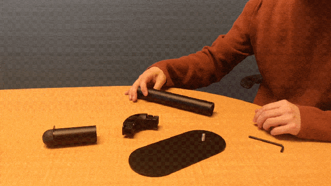 Each piece is powder-coated aluminum in white or black, super strong, and snaps together with just an Allen wrench. Here’s a quick GIF of the company’s founder, Sejun Park, building a headphone stand at our office (sped up for the sake of file size – actual assembly time was ~20 seconds):