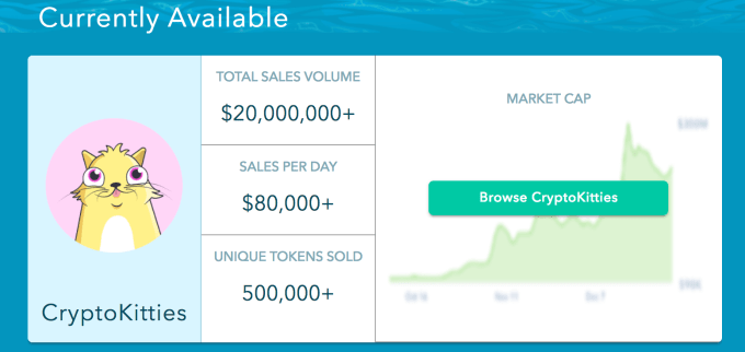 OpenSea is a peer-to-peer marketplace for buying, selling and discovering crypto assets and collectibles. Just as Coinbase operates as an exchange for cryptocurrencies, this is a marketplace for all other asset types on the blockchain, like software licenses, collectibles, Cryptokitties and other digital goods on the blockchain. In the last two months, Open Sea has done $500,000 in ethereal volume.
