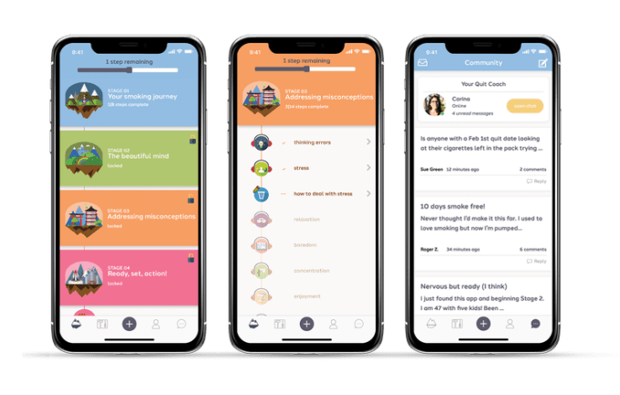 Quit Genius is an app “that delivers personalized therapy to help people quit smoking.” It helps people identify the reasons they smoke and hopes to help them overcome them. They work with companies including a “technology giant” to pay for Quit Genius, in order to help employees. The startup says there is a $10 billion market for people trying to quit smoking, and wants to expand to alcohol and other addictions.