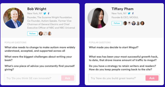 Molly uses AI to generate Q&As for people who are frequently asked the same questions — celebrities, field experts, etc.