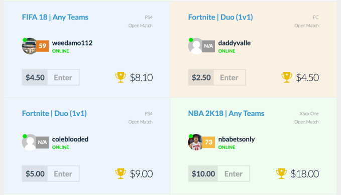 The company is looking to add support for larger groups to go at it against each other rather than the current 1v1 wagers. As the company has added support to new titles, its revenues have grown 100 percent month-over-month for the past four months on an annualized run rate of $2 million, the company says. Users are also sticking around, the company says that 30 percent of users play another match within 12 weeks of playing their first game on the service.