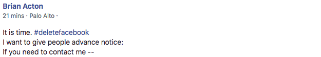 Brian Acton, the co-founder of messaging service WhatsApp (which Facebook bought in 2014 for $19 billion) is now joining the chorus of the #deletefacebook movement.